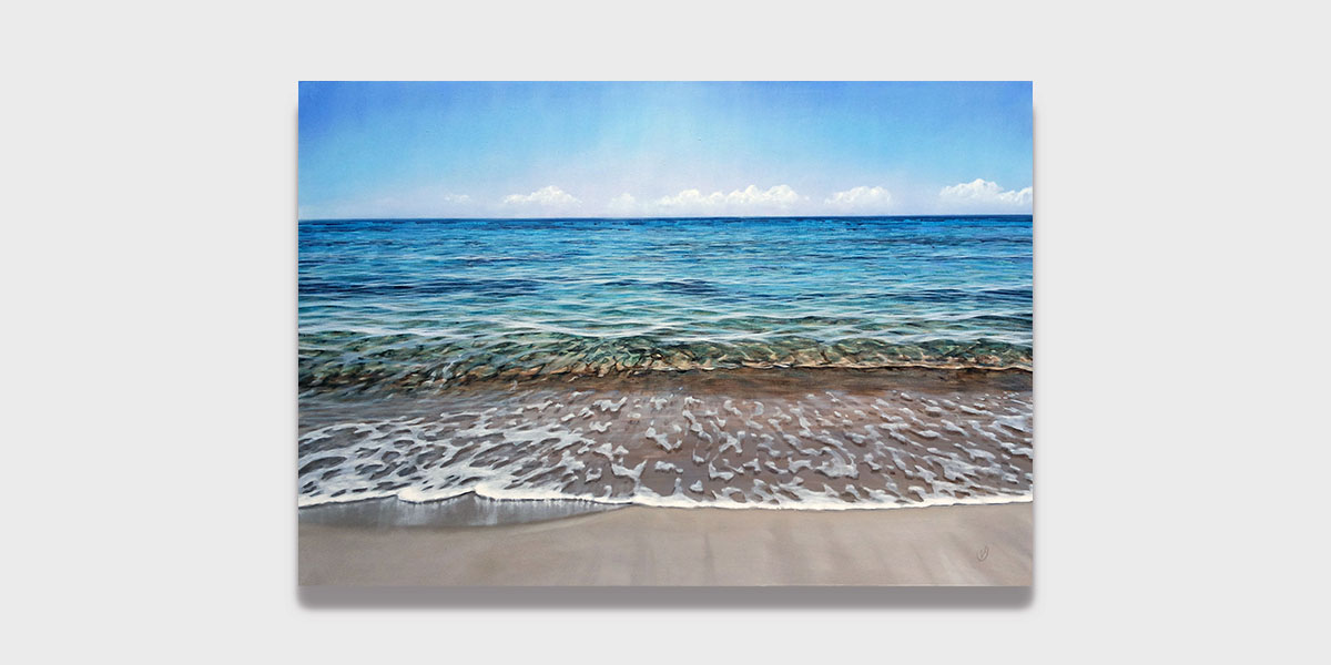 Paysage Maritime de l’artiste Belge Eléonore Bernair Artiste Figuratif Hyperréalisme Acrylique et huile sur toile de lin Plage Mer Vague Soleil Pont-Aven Galerie Maner Collectionneur Bretagne Art Finistère Penn Ar Bed Contemporain Contemporary Tourisme Artwork Oeuvres Musée
