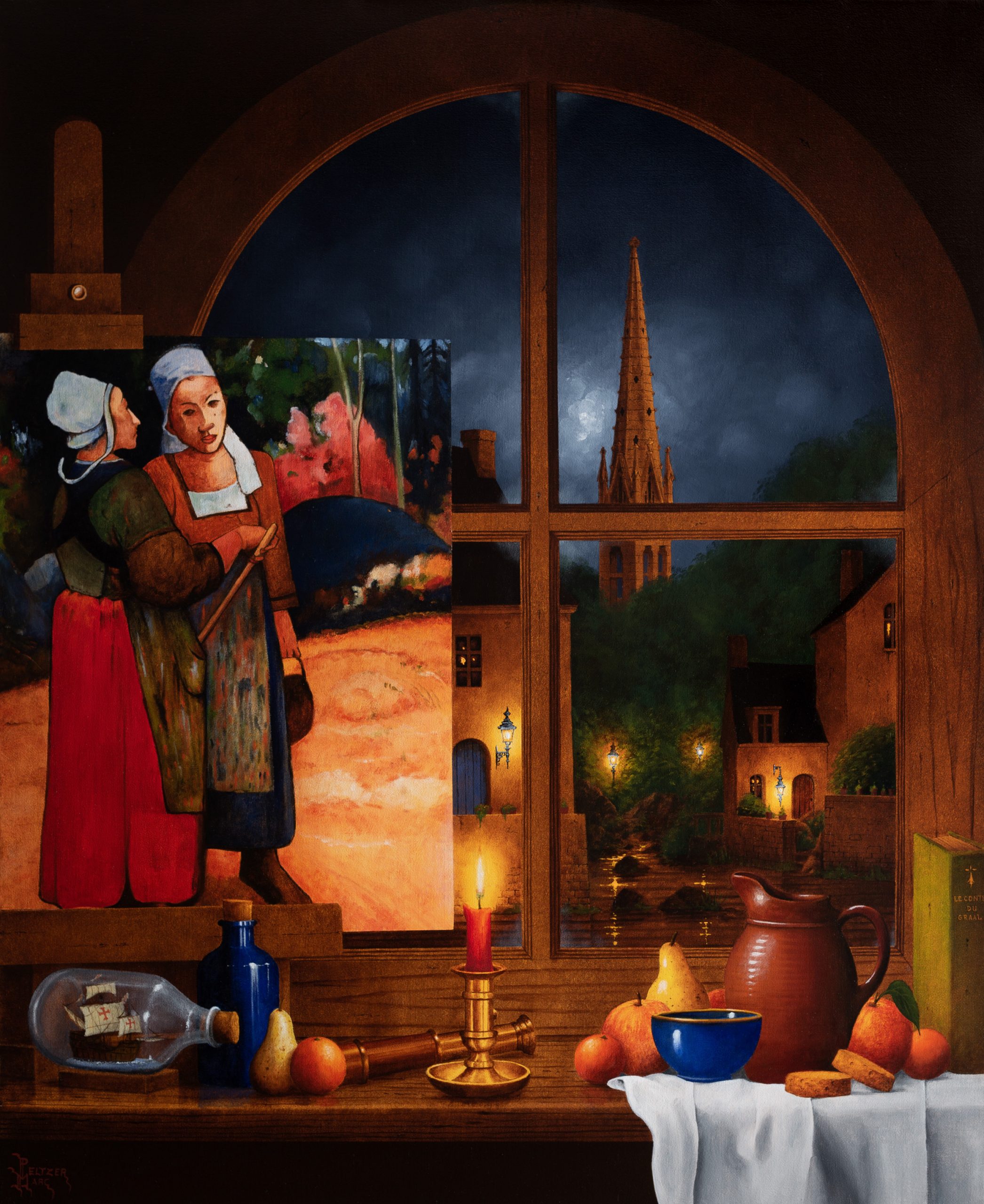 Marc PELTZER est né le 2 décembre 1962 à Saint Germain en Laye. Il est d’origine belge par son grand père paternel, Marc PELTZER a toujours été influencé par les peintres flamands, leur clair-obscur et leur lumière particulière. Aujourd’hui ses peintures nocturnes représentant des villes et des paysages imaginaires. S’inspirent de cette atmosphère spécifique, quasi magique. De plus Il recherche dans ses œuvres une harmonie entre les constructions humaines et la nature qui les entoure. Après Ces villes et villages s’intègrent parfaitement dans les paysages qu’il imagine. En utilisant toujours les même matériaux naturels: la pierre et le bois. Ils en sont le prolongement, comme un rappel que l’homme n’est pas au dessus de la nature qui l’entoure, mais qu’il est, en quelque sorte, le garant de l’équilibre du monde.